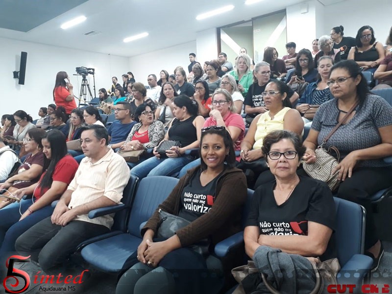 No dia 23 de maio, uma delegação de Trabalhadores(as) Administrativos em Educação filiados(as) ao SIMTED Aquidauana e FETEMS (Federação dos Trabalhadores em Educação de Mato Grosso do Sul) lotaram a Assembleia Legislativa contra reajuste zero do Governo do Estado.