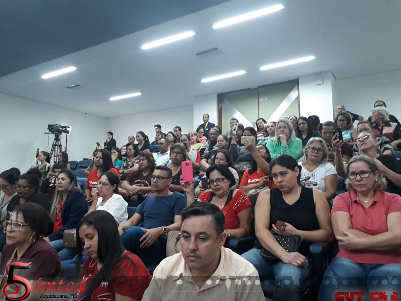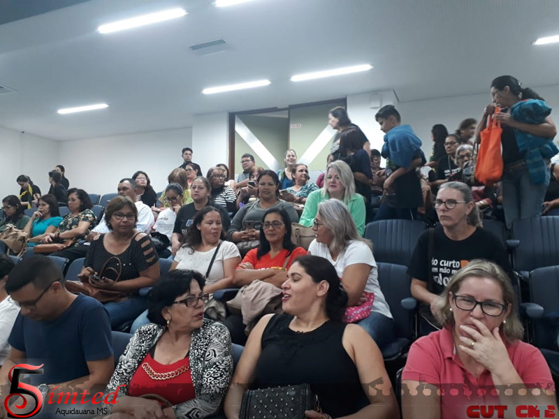 No dia 23 de maio, uma delegação de Trabalhadores(as) Administrativos em Educação filiados(as) ao SIMTED Aquidauana e FETEMS (Federação dos Trabalhadores em Educação de Mato Grosso do Sul) lotaram a Assembleia Legislativa contra reajuste zero do Governo do Estado.